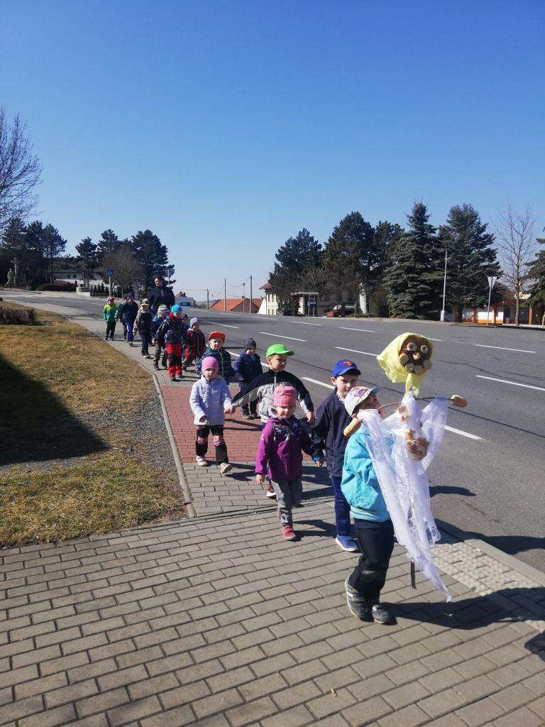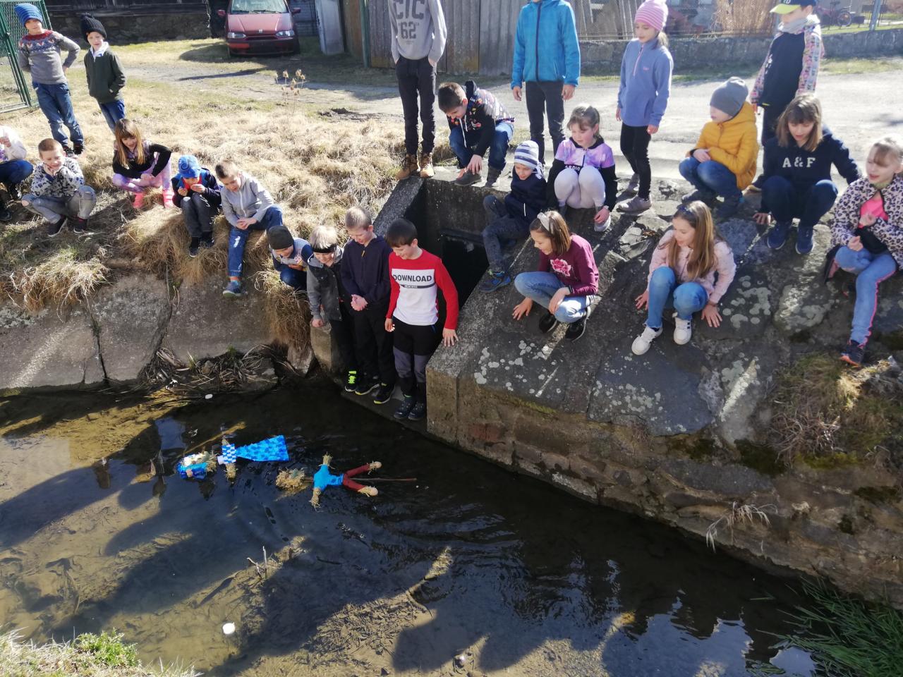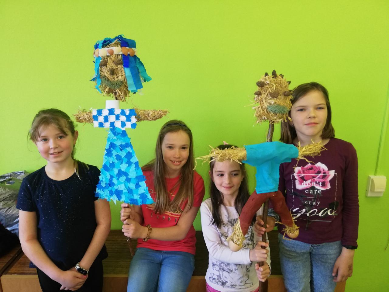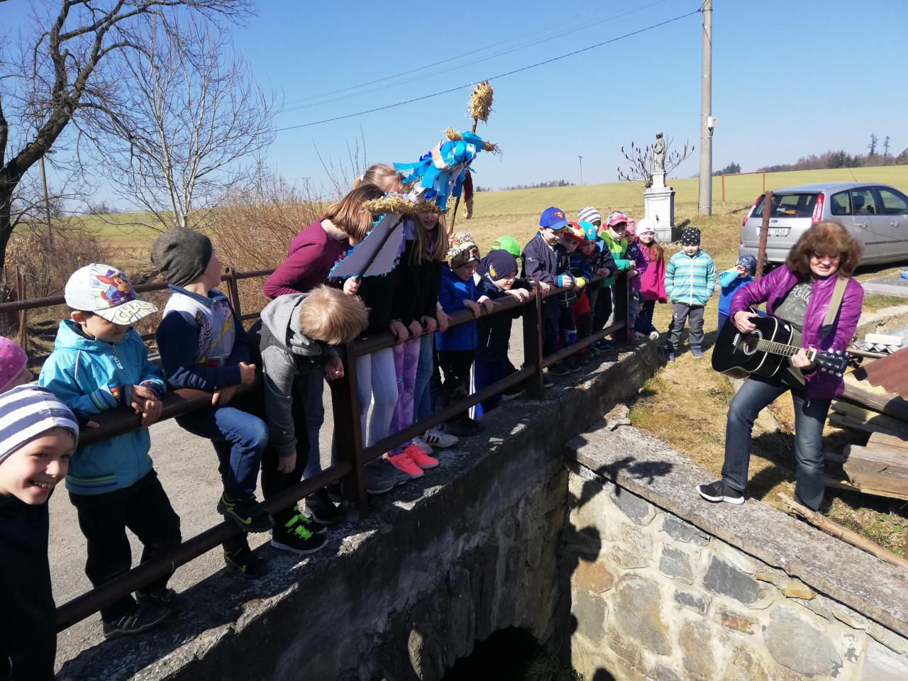 V pátek jsme se definitivně rozloučili se zimou. V družině holky vyrobily 2 slaměné figury. V průvodu od školy za zpěvu písní jsme došli k potoku, kde všechny smrtky byly vhozeny do potoka a tímto rituálem bylo přívítáno jaro. Hurá.