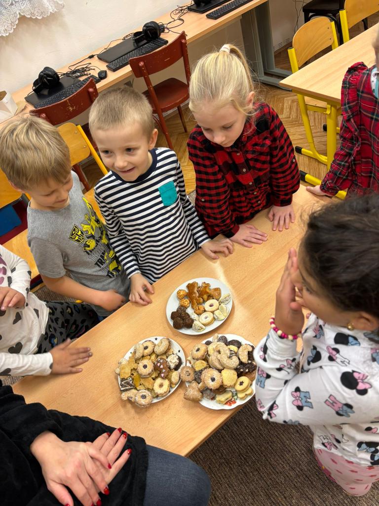 Poslední školní den v roce 2024 již vždy tradičně ve škole ochutnáváme cukroví, rozdáváme si dárečky, povídáme si o vánočních tradicích a zvycích, chodíme po vesnici koledovat a nakonec se sejdeme vždy s dětmi z Mateřské školy, kde si navzájem děláme radost zpíváním koled.