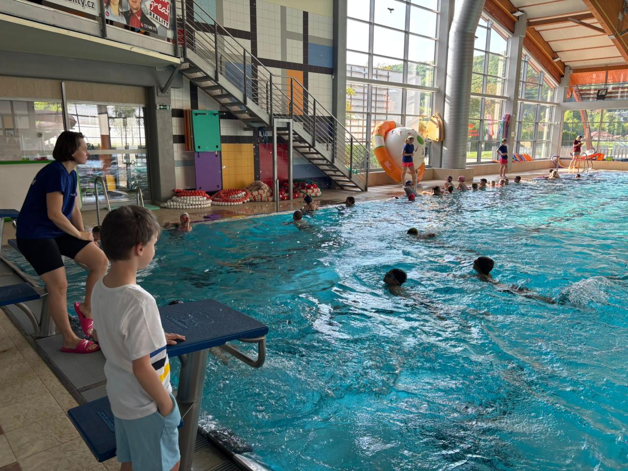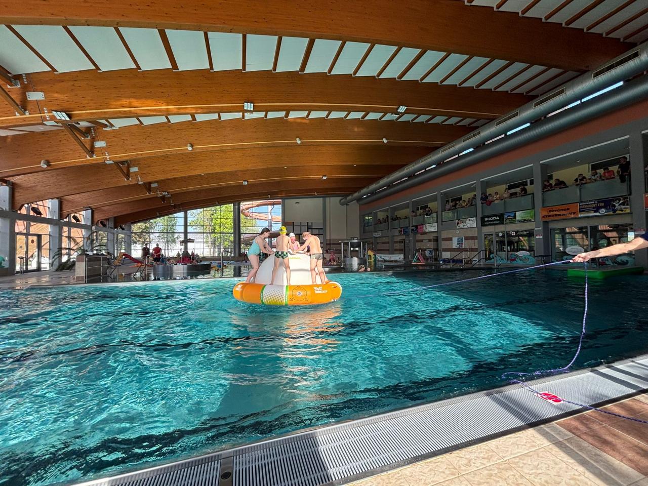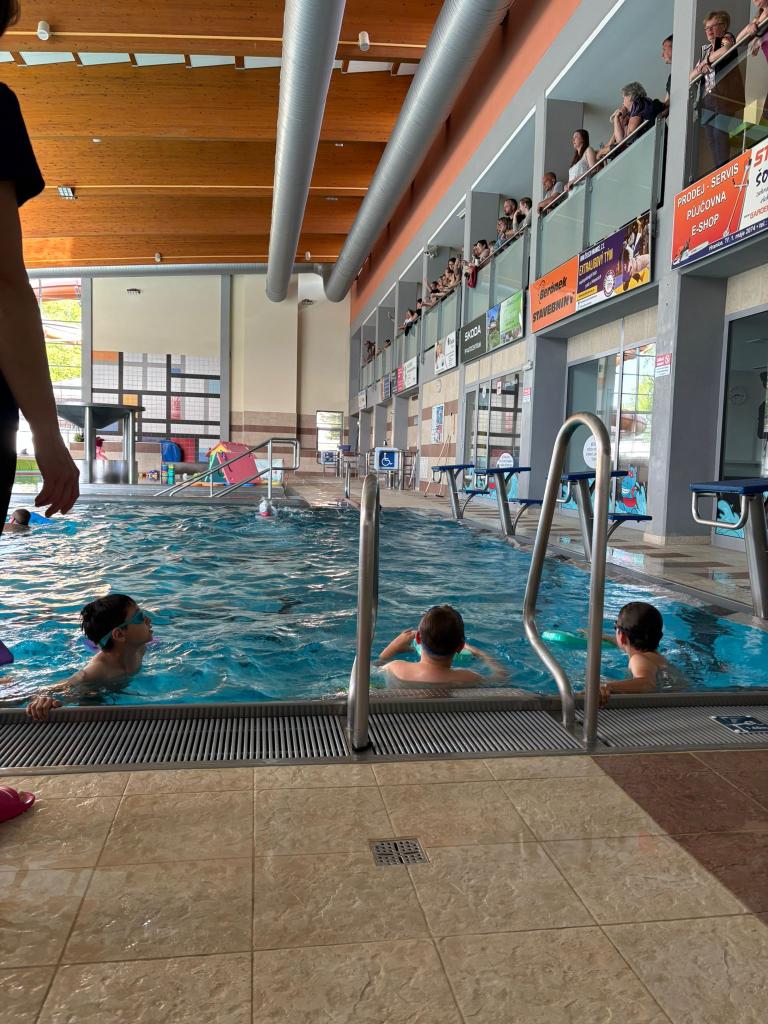 Proběhla ukázka výuky plavání, poté následovala zábava a vodní hrátky. Na závěr všechny děti dostaly mokré vysvědčení.