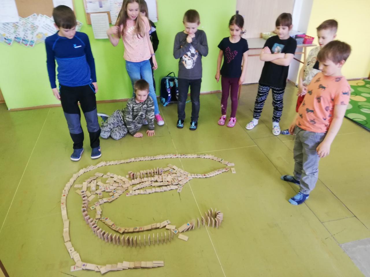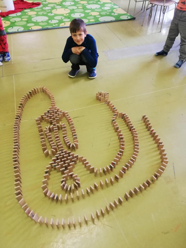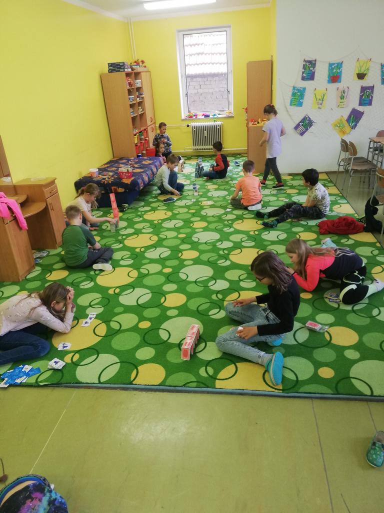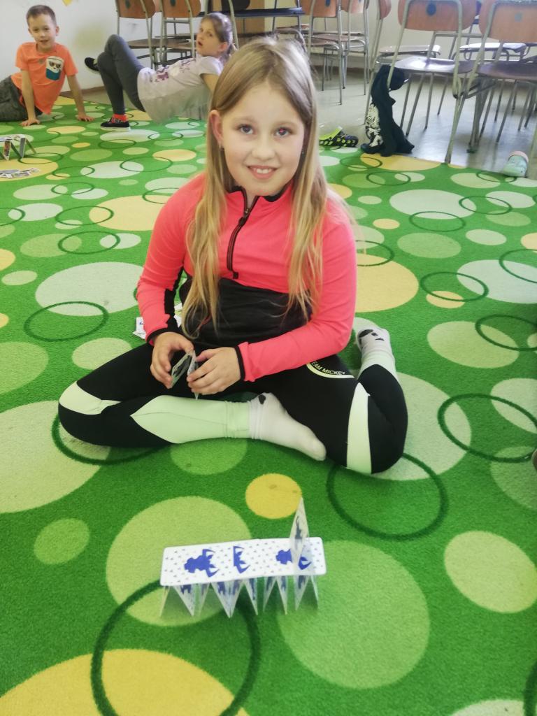 Děti pomocí karet stavěly pyramidy a z dominových kostek různé labyrinty. Trénovaly tak jemnou motoriku, trpělivost a soustředěnost. Byly moc šikovní a ve výsledku každý dosáhl svého cíle.