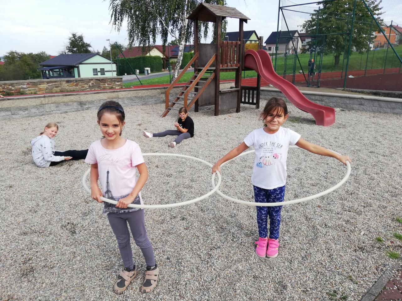 Školní hřiště, různé vnitřní hry, pískové i dominové labyrinty, hraní na popelky, modelování z těsta, a spoustu jiného...