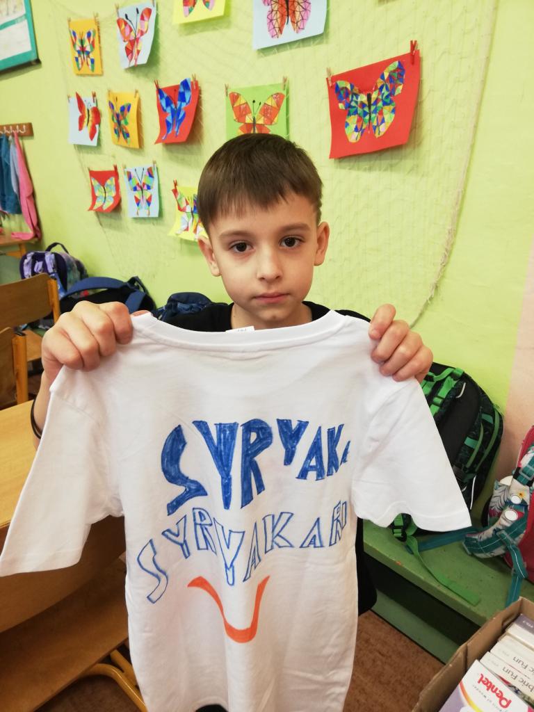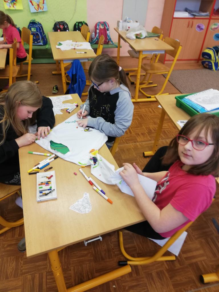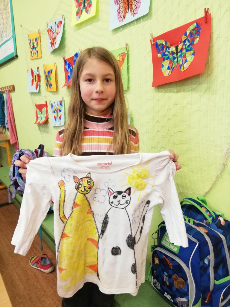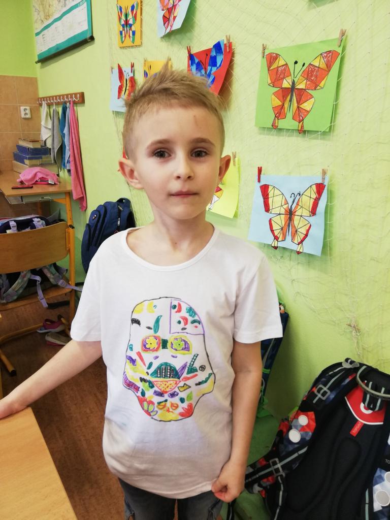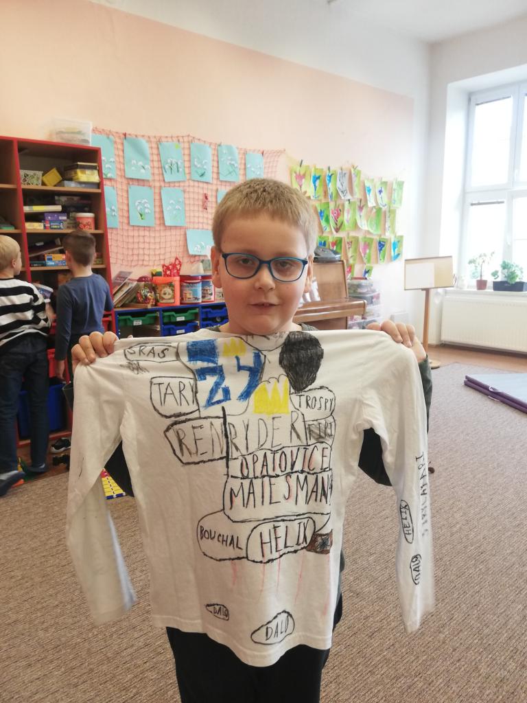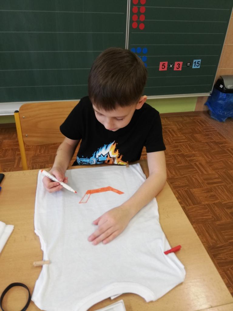 Děti si na donesené trika z domu v družině mohly namalovat dle svých představ obrázky, které chtěly. Trika se jim moc povedly :-)