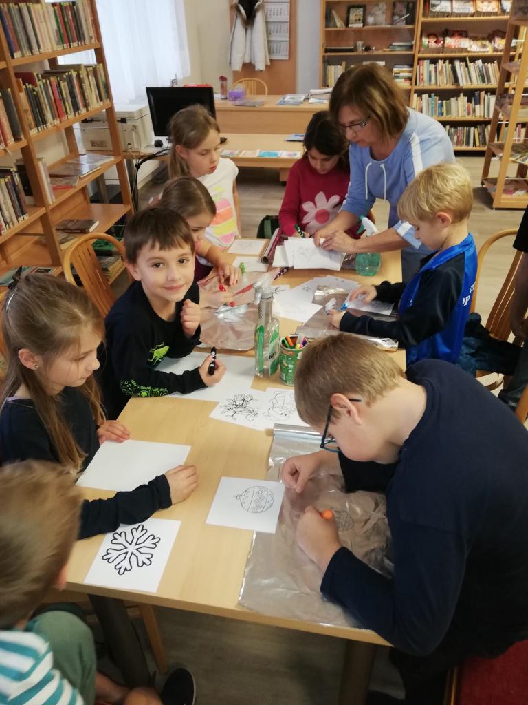 Se školní družinu jsme navštívili místní knihovnu. Paní Hasilíková si nachystala besedu o Adventu, představila nám knižní novinky a na závěr si děti vyrobily obrázek se speciální výtvarnou technikou.